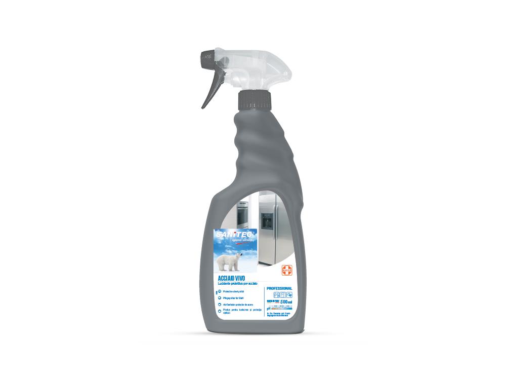 MODALITÀ D’USO: spruzzare e distribuire uniformemente utilizzando un panno pulito. Per un risultato eccellente, pretrattare la superficie con Sanitec Sgrassacciaio.